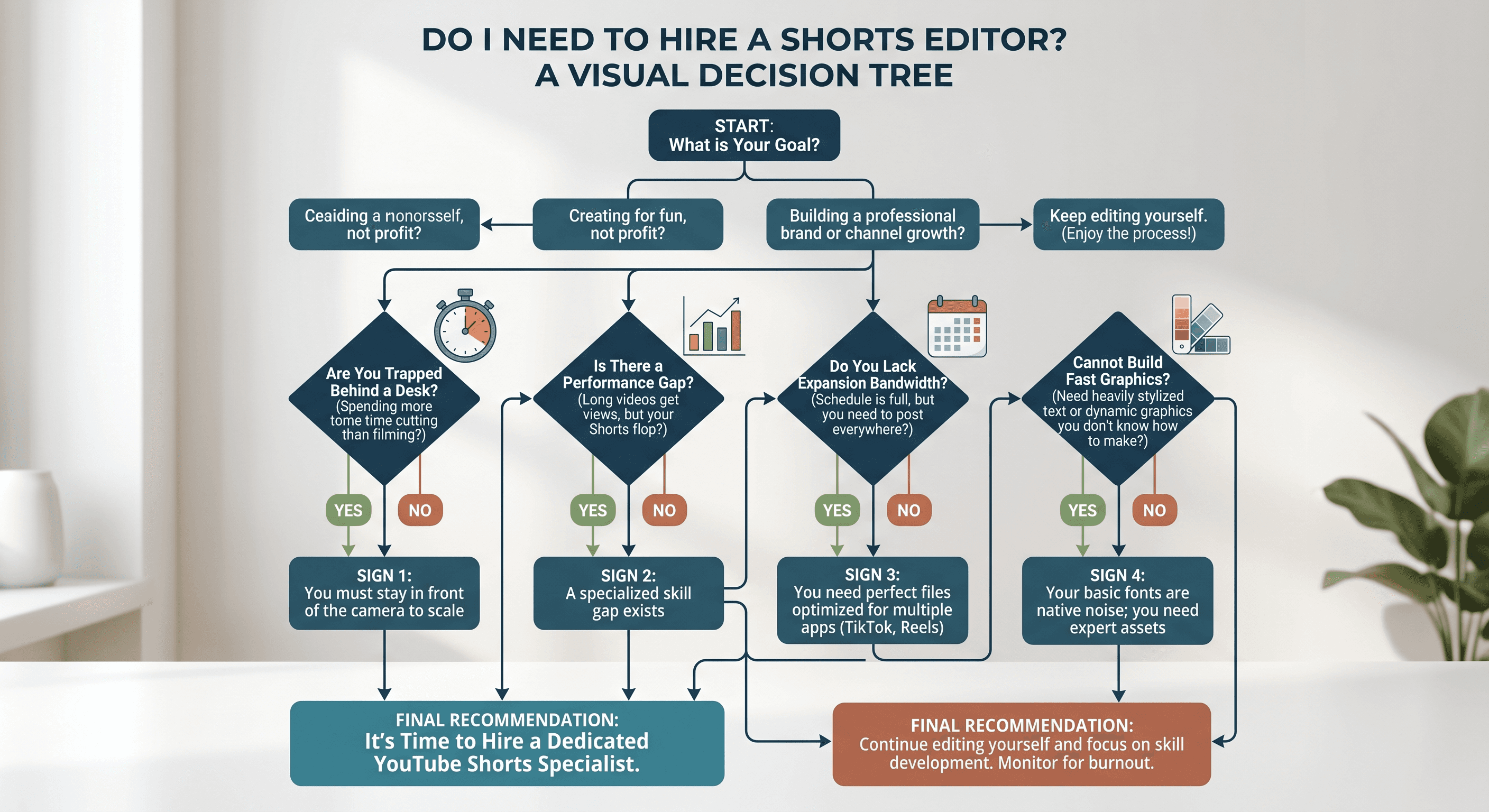 If you only need basic cuts once a year, a generalist is fine. But to scale a real channel, you need specialized talent for each format.