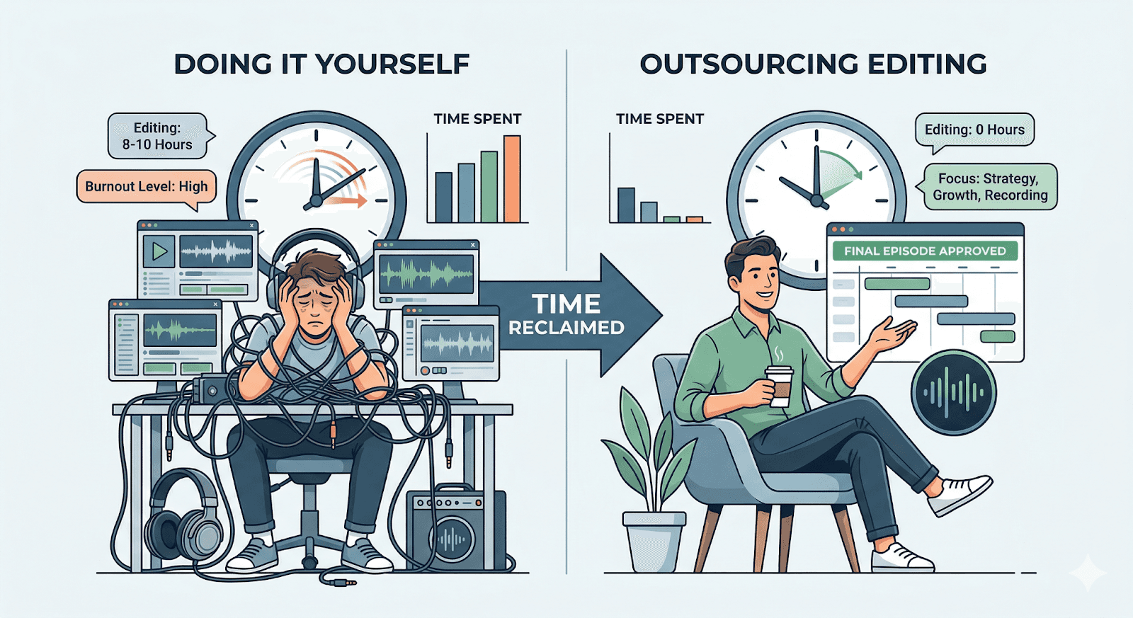 They outsource podcast editing to win back their time.